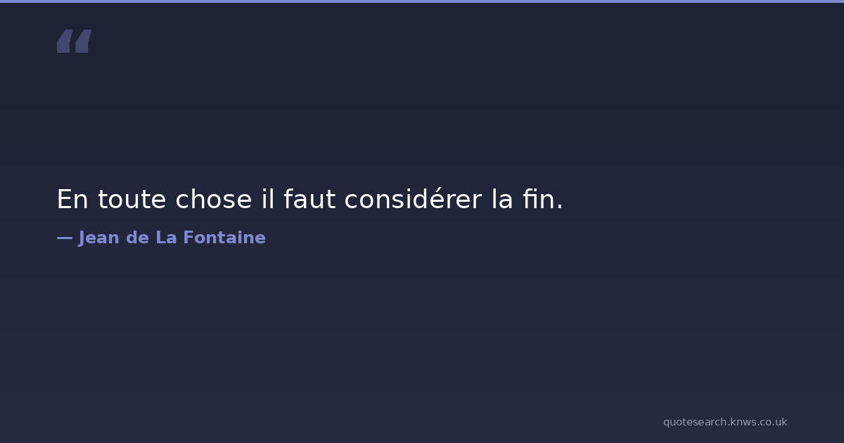 En toute chose il faut considérer la fin.