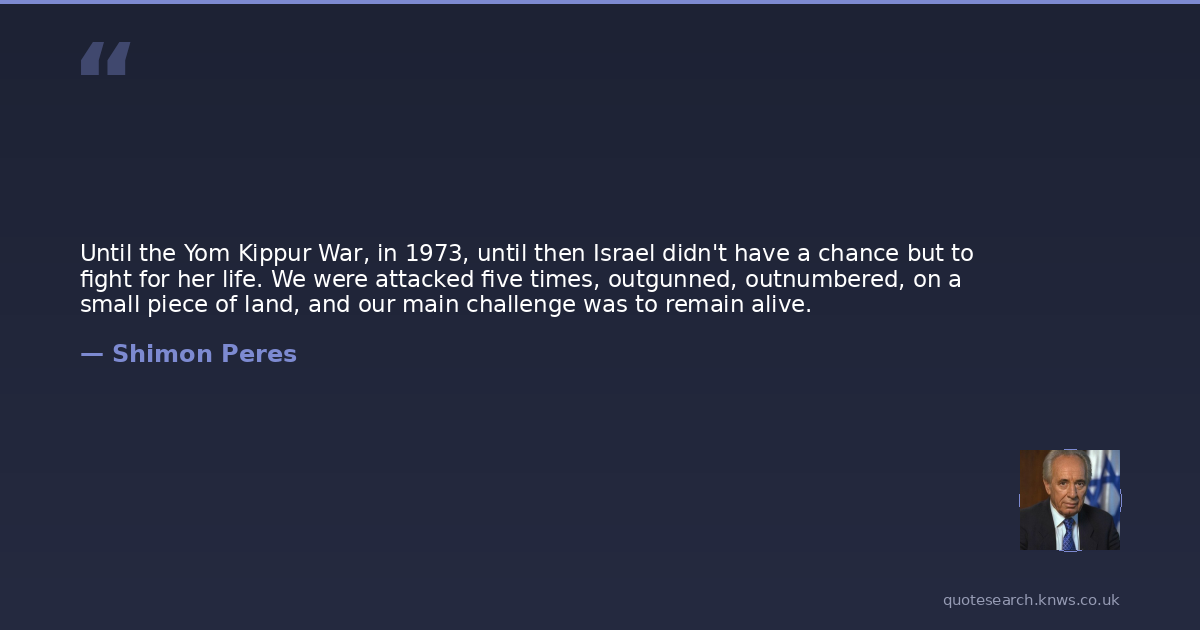 Until the Yom Kippur War, in 1973, until then Israel didn't have a chance but to fight for her life. We were attacked five times, outgunned, outnumbered, on a small piece of land, and our main challenge was to remain alive.