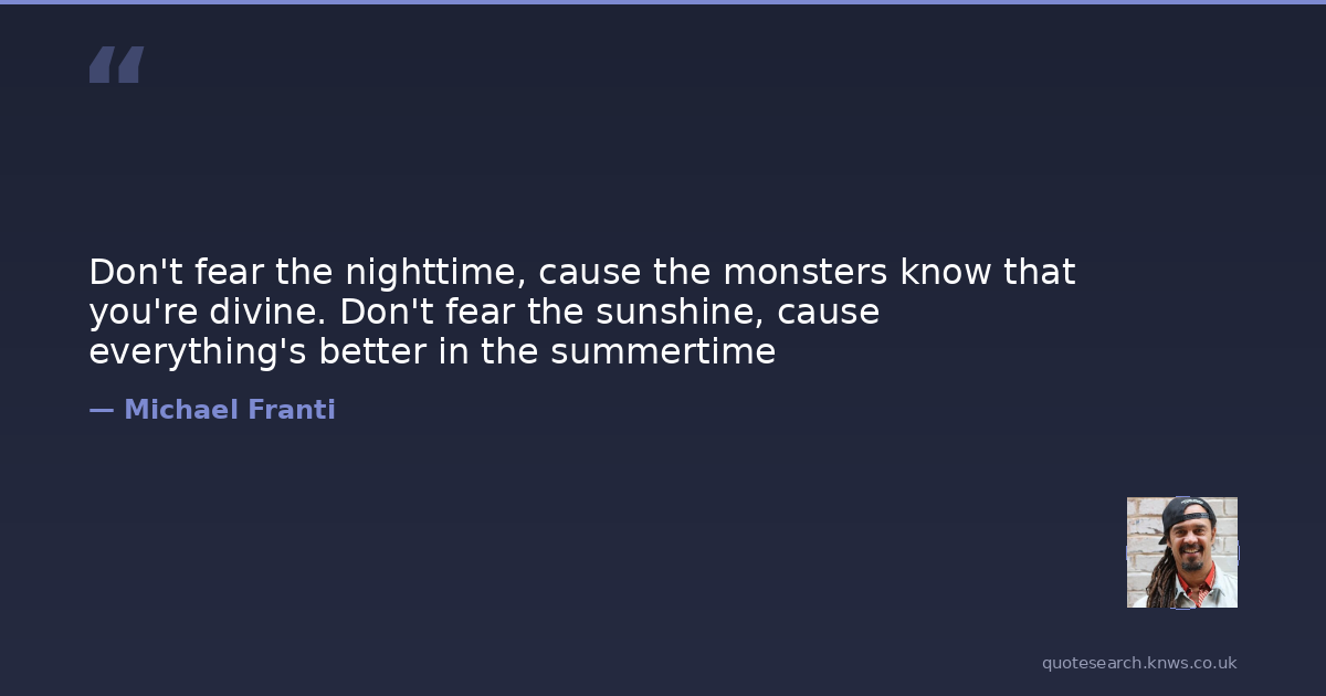 Don't fear the nighttime, cause the monsters know that you're divine. Don't fear the sunshine, cause everything's better in the summertime