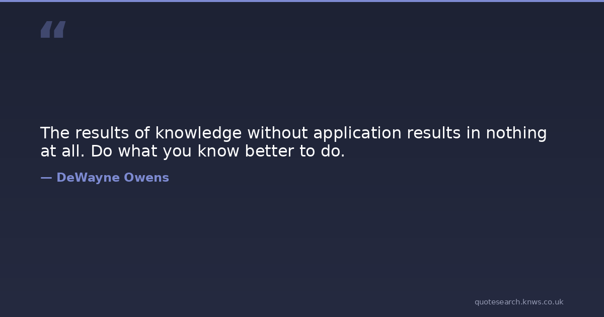 The results of knowledge without application results in nothing at all. Do what you know better to do.