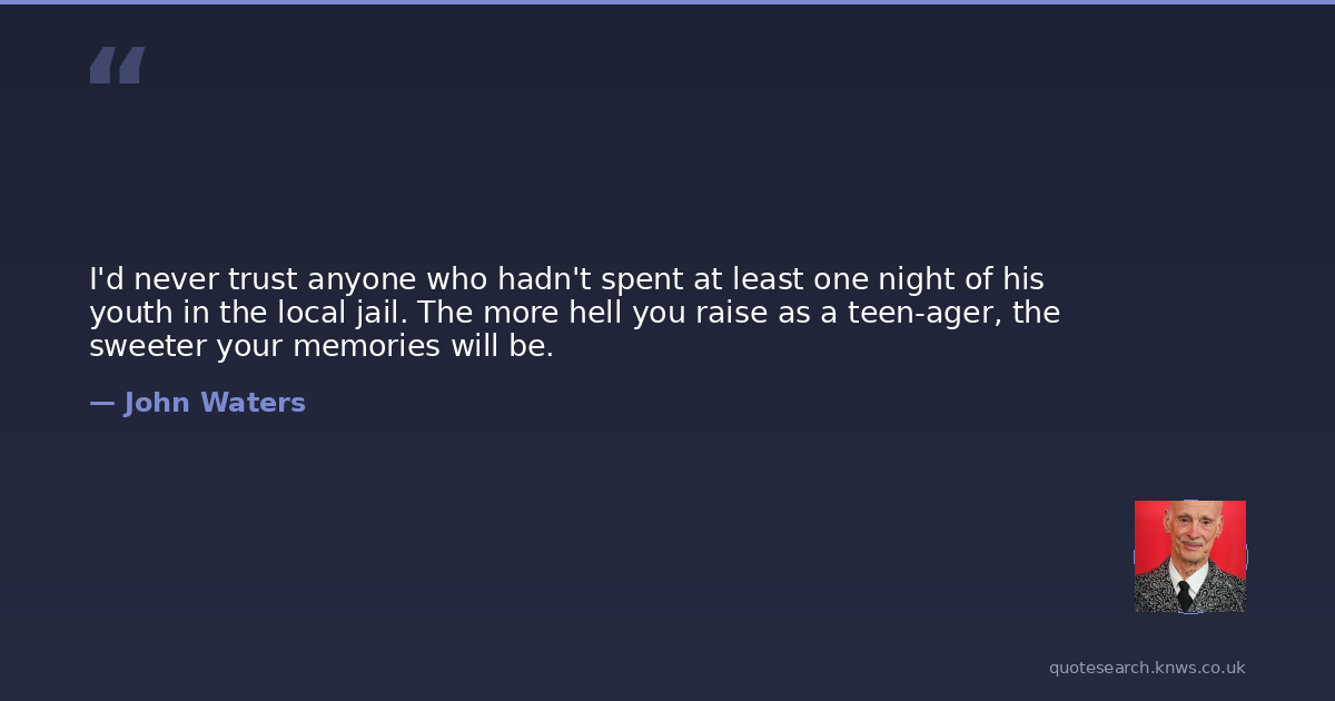 I'd never trust anyone who hadn't spent at least one night of his youth in the local jail. The more hell you raise as a teen-ager, the sweeter your memories will be.