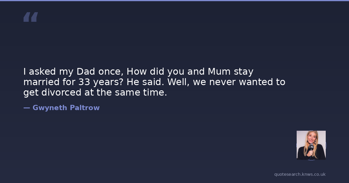 I asked my Dad once, How did you and Mum stay married for 33 years? He said. Well, we never wanted to get divorced at the same time.