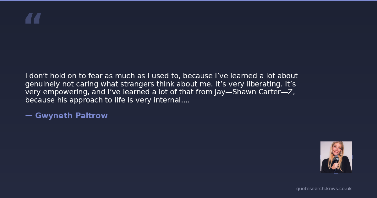 I don’t hold on to fear as much as I used to, because I’ve learned a lot about genuinely not caring what strangers think about me. It’s very liberating. It’s very empowering, and I’ve learned a lot of that from Jay—Shawn Carter—Z, because his approach to life is very internal. It’s a very good lesson to learn. source