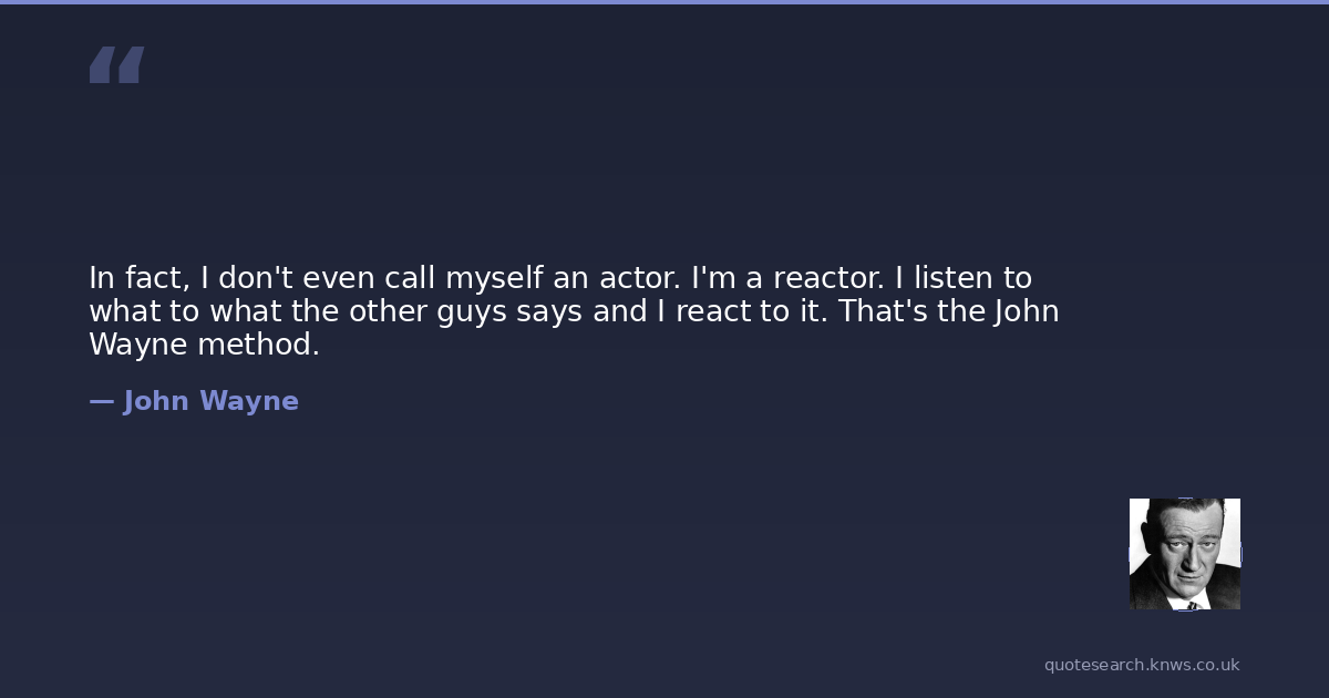 In fact, I don't even call myself an actor. I'm a reactor. I listen to what to what the other guys says and I react to it. That's the John Wayne method.