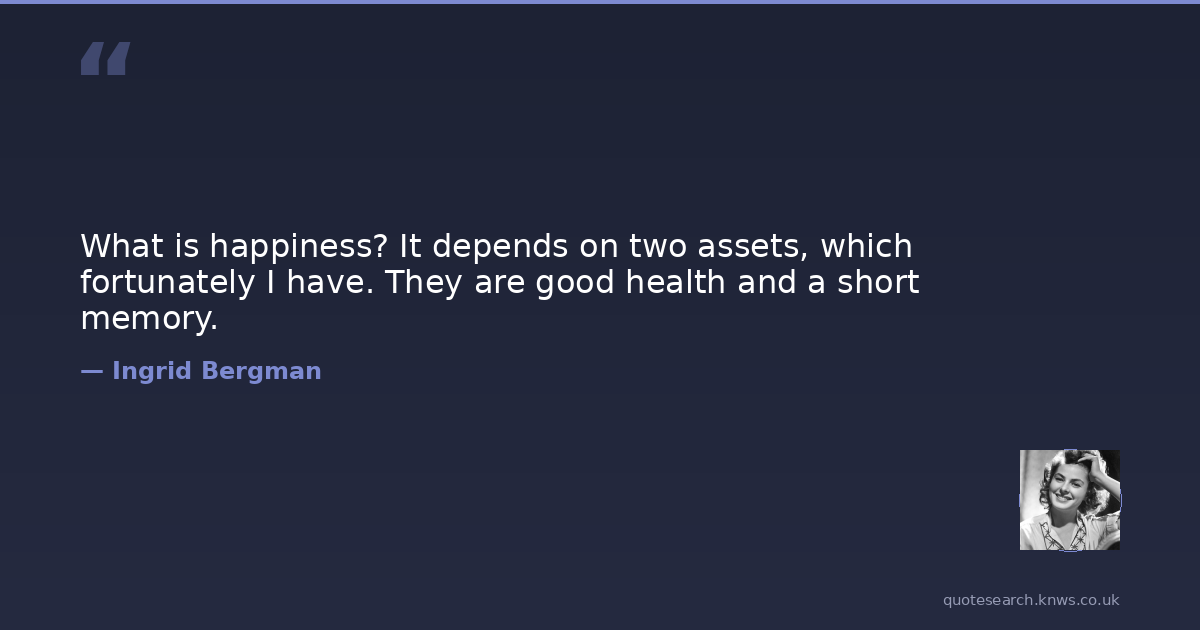 What is happiness? It depends on two assets, which fortunately I have. They are good health and a short memory.