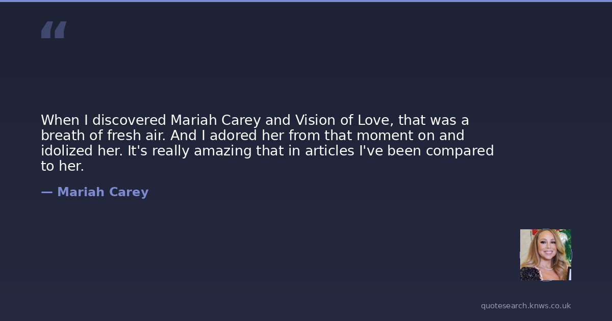 When I discovered Mariah Carey and Vision of Love, that was a breath of fresh air. And I adored her from that moment on and idolized her. It's really amazing that in articles I've been compared to her.