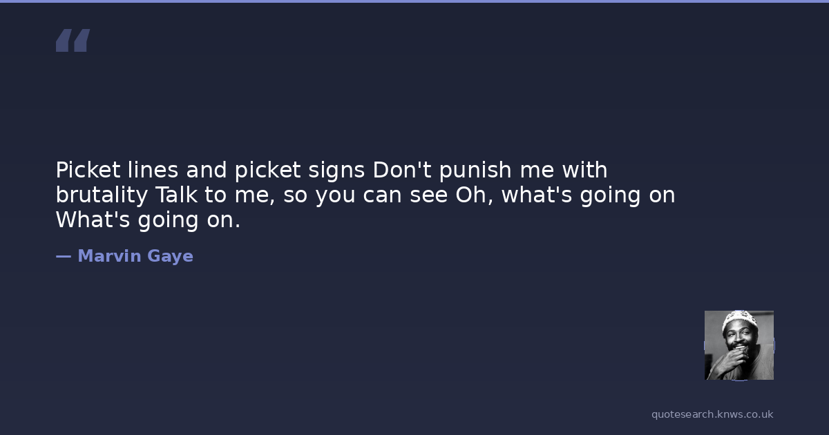 Picket lines and picket signs Don't punish me with brutality Talk to me, so you can see Oh, what's going on What's going on.