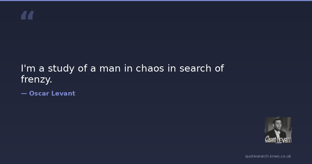 I'm a study of a man in chaos in search of frenzy.