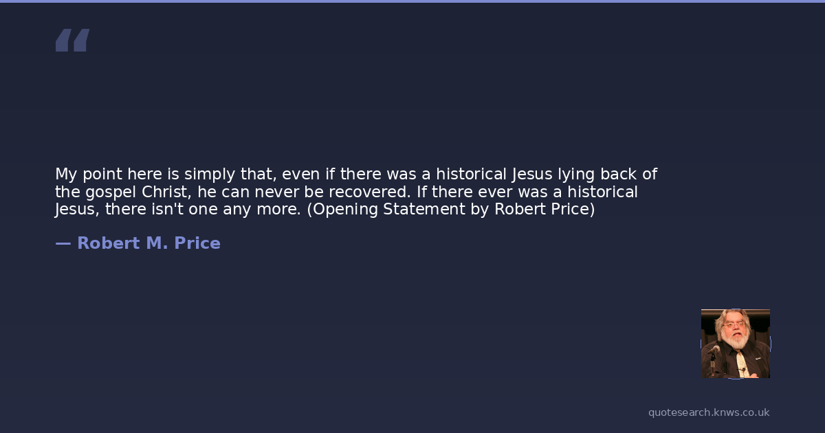 My point here is simply that, even if there was a historical Jesus lying back of the gospel Christ, he can never be recovered. If there ever was a historical Jesus, there isn't one any more. (Opening Statement by Robert Price)