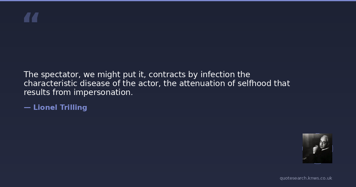 The spectator, we might put it, contracts by infection the characteristic disease of the actor, the attenuation of selfhood that results from impersonation.