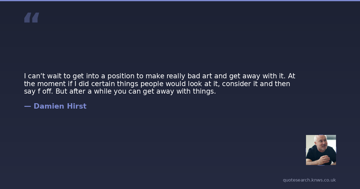 I can’t wait to get into a position to make really bad art and get away with it. At the moment if I did certain things people would look at it, consider it and then say f off. But after a while you can get away with things.