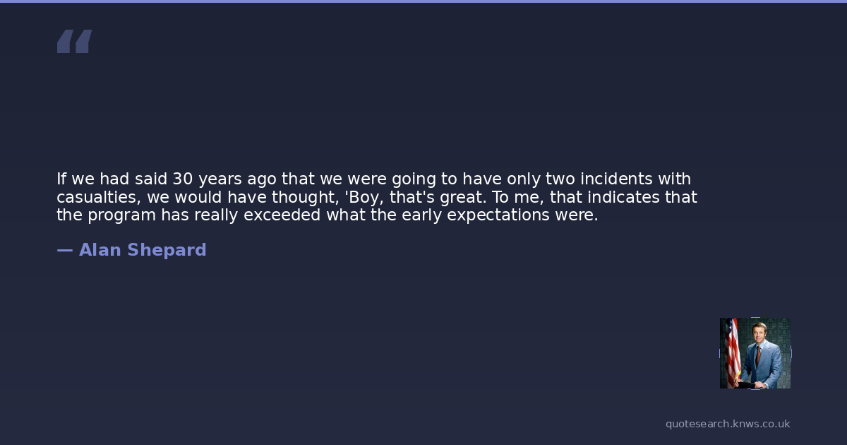 If we had said 30 years ago that we were going to have only two incidents with casualties, we would have thought, 'Boy, that's great. To me, that indicates that the program has really exceeded what the early expectations were.
