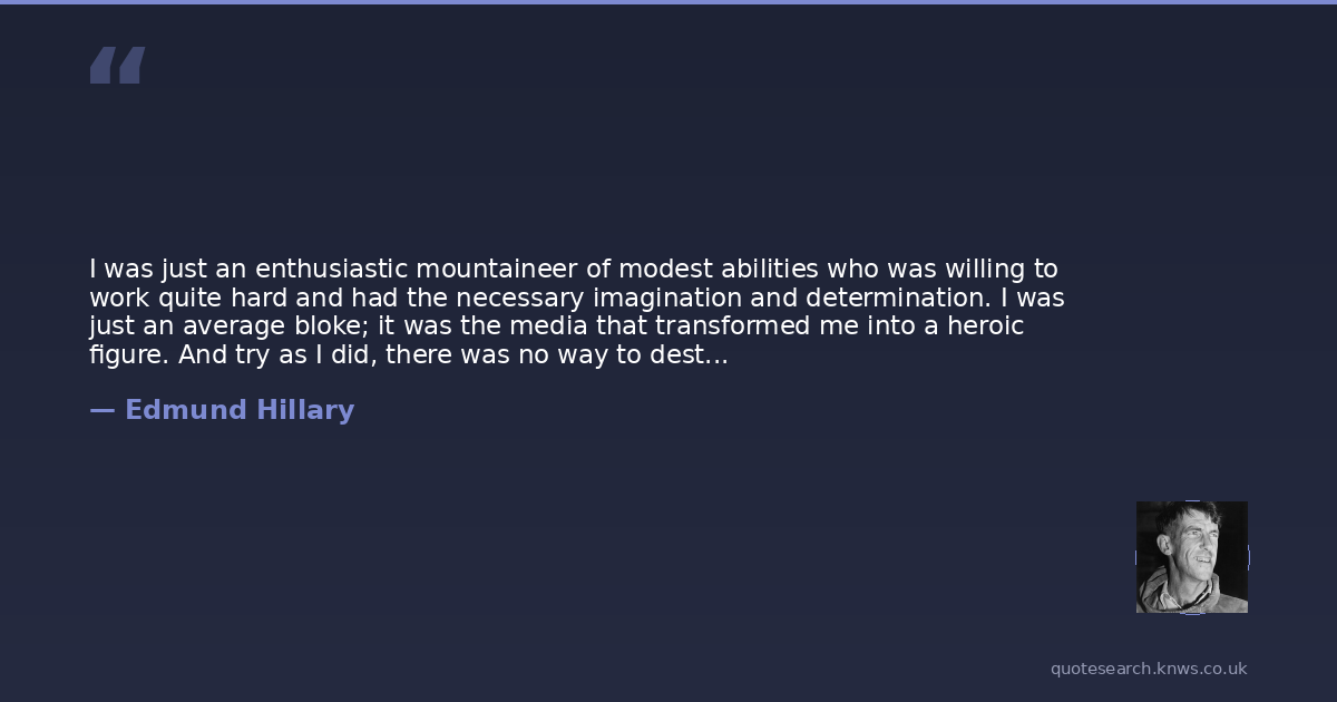 I was just an enthusiastic mountaineer of modest abilities who was willing to work quite hard and had the necessary imagination and determination. I was just an average bloke; it was the media that transformed me into a heroic figure. And try as I did, there was no way to destroy my heroic image. But as I learned through the years, as long as you didn’t believe all that rubbish about yourself, you wouldn’t come to much harm.