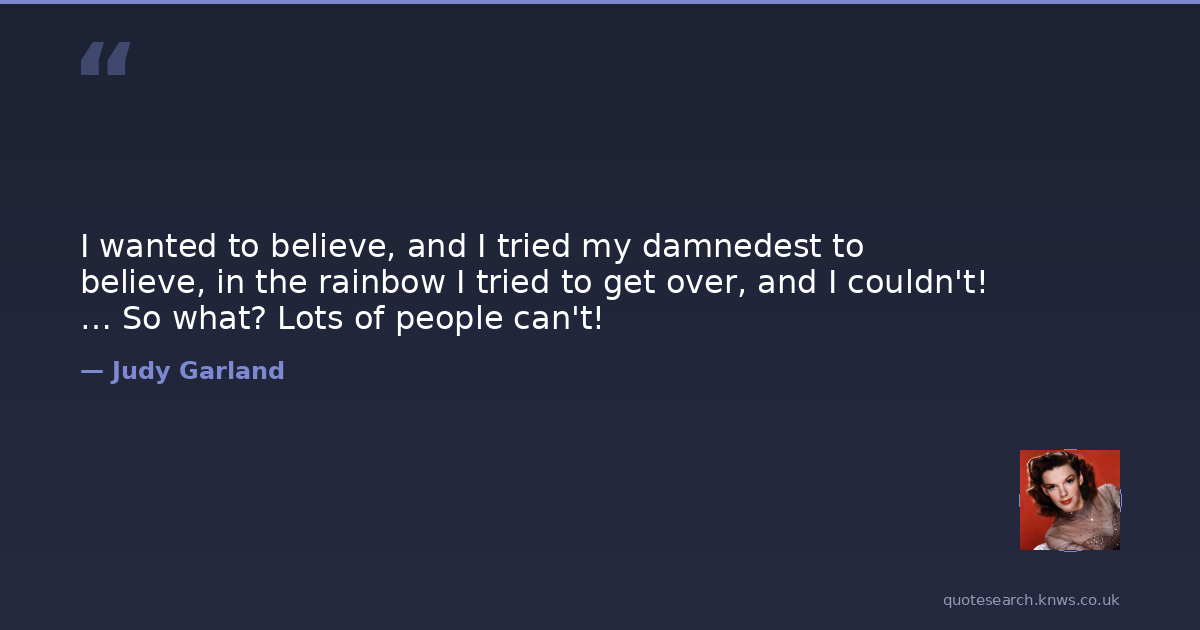 I wanted to believe, and I tried my damnedest to believe, in the rainbow I tried to get over, and I couldn't! … So what? Lots of people can't!