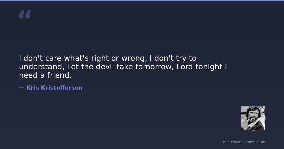 I don't care what's right or wrong, I don't try to understand, Let the devil take tomorrow, Lord tonight I need a friend.