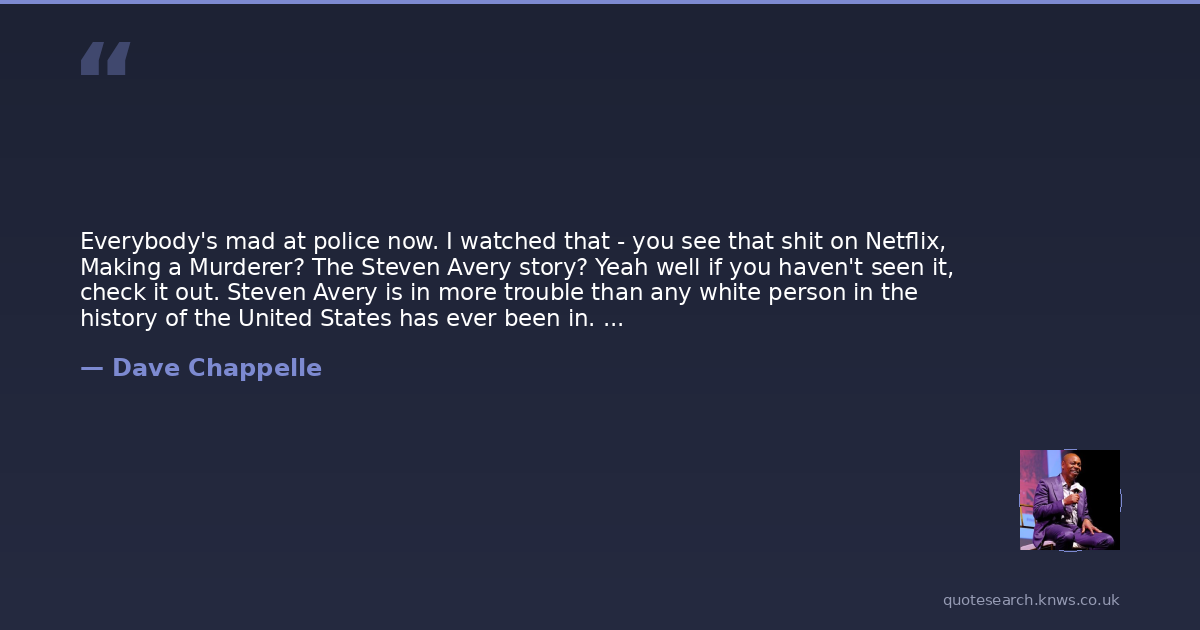 Everybody's mad at police now. I watched that - you see that shit on Netflix, Making a Murderer? The Steven Avery story? Yeah well if you haven't seen it, check it out. Steven Avery is in more trouble than any white person in the history of the United States has ever been in. In a justice system designed for him to thrive, he's failed miserably twice. I can't even wrap my mind about it. If Making a Murderer was about a black dude, that shit would be called Duh! Of course everything would go wrong.