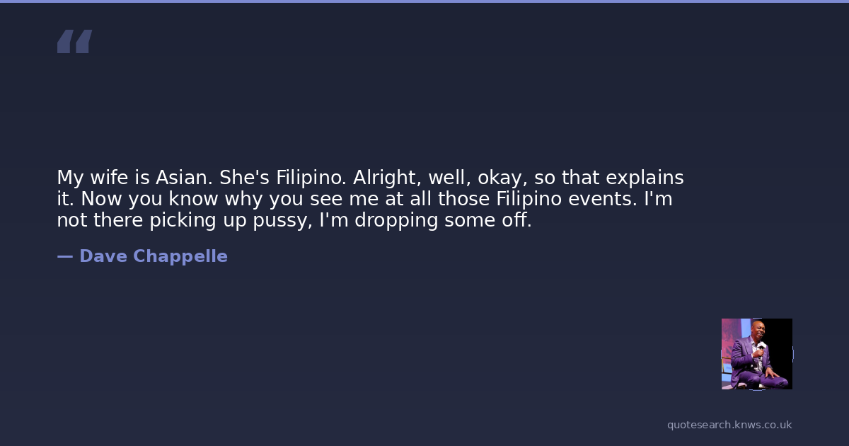 My wife is Asian. She's Filipino. Alright, well, okay, so that explains it. Now you know why you see me at all those Filipino events. I'm not there picking up pussy, I'm dropping some off.