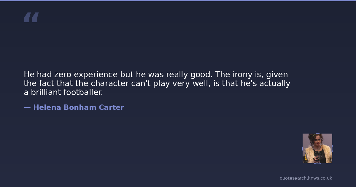 He had zero experience but he was really good. The irony is, given the fact that the character can't play very well, is that he's actually a brilliant footballer.