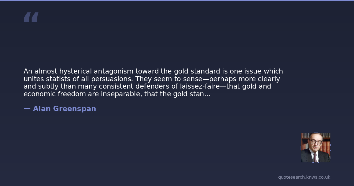 An almost hysterical antagonism toward the gold standard is one issue which unites statists of all persuasions. They seem to sense—perhaps more clearly and subtly than many consistent defenders of laissez-faire—that gold and economic freedom are inseparable, that the gold standard is an instrument of laissez-faire and that each implies and requires the other.