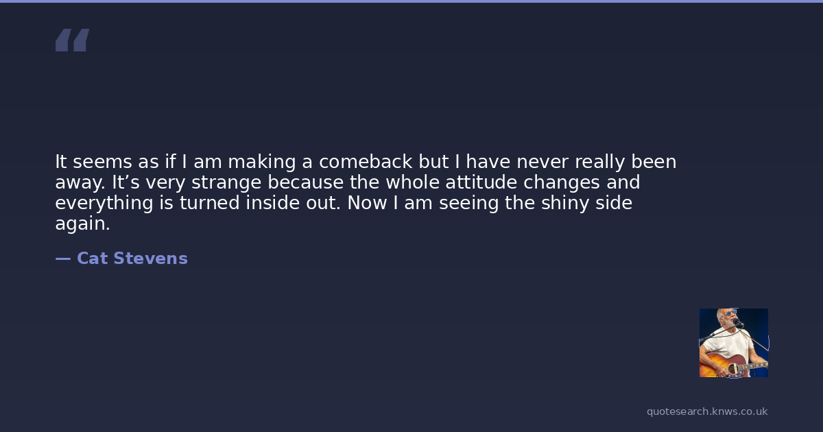It seems as if I am making a comeback but I have never really been away. It’s very strange because the whole attitude changes and everything is turned inside out. Now I am seeing the shiny side again.