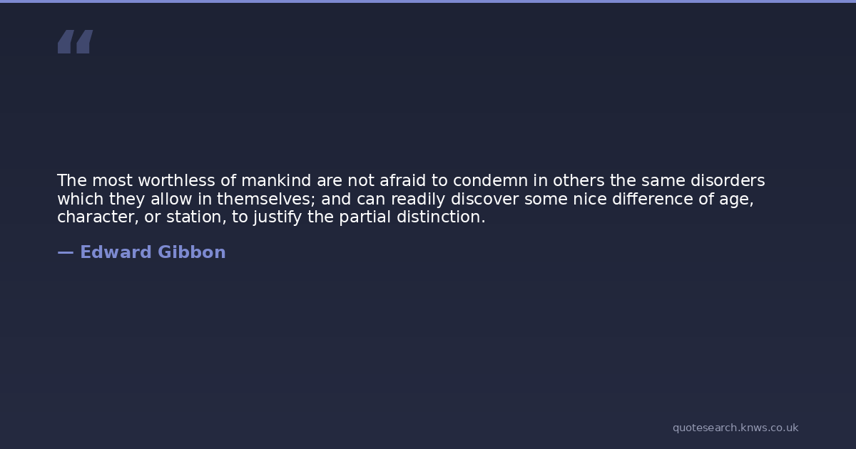 The most worthless of mankind are not afraid to condemn in others the same disorders which they allow in themselves; and can readily discover some nice difference of age, character, or station, to justify the partial distinction.