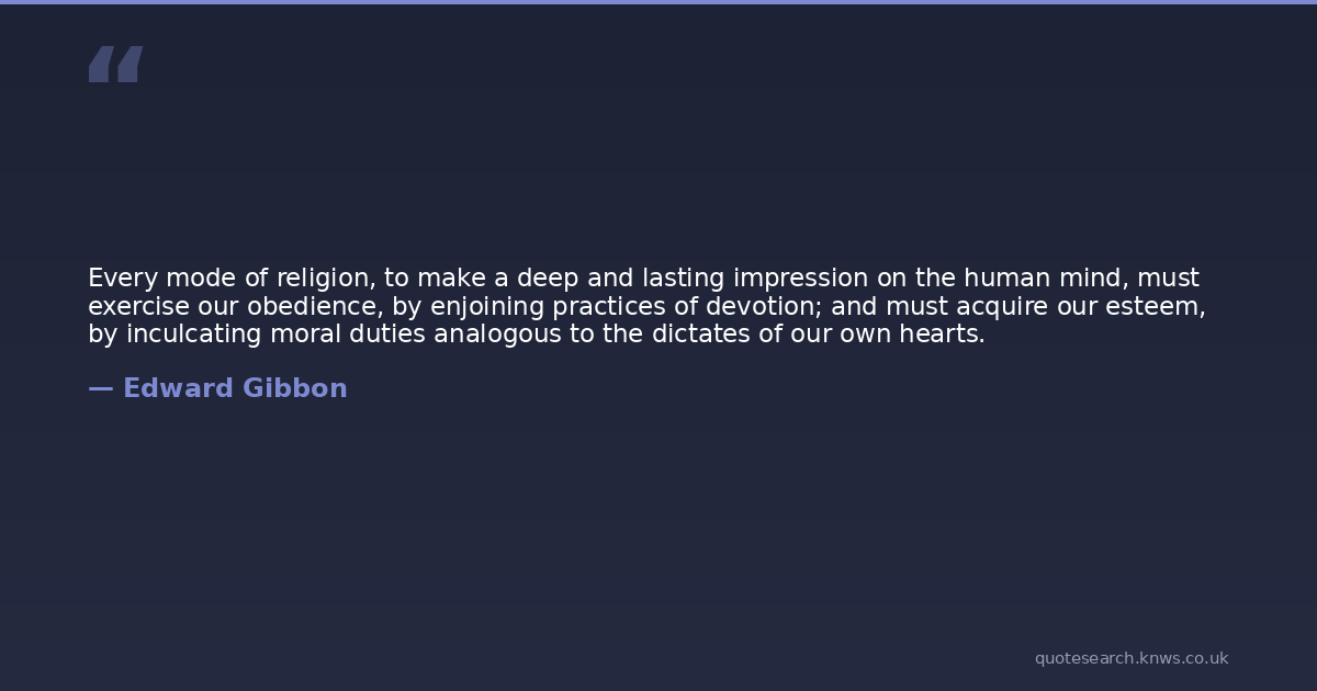Every mode of religion, to make a deep and lasting impression on the human mind, must exercise our obedience, by enjoining practices of devotion; and must acquire our esteem, by inculcating moral duties analogous to the dictates of our own hearts.