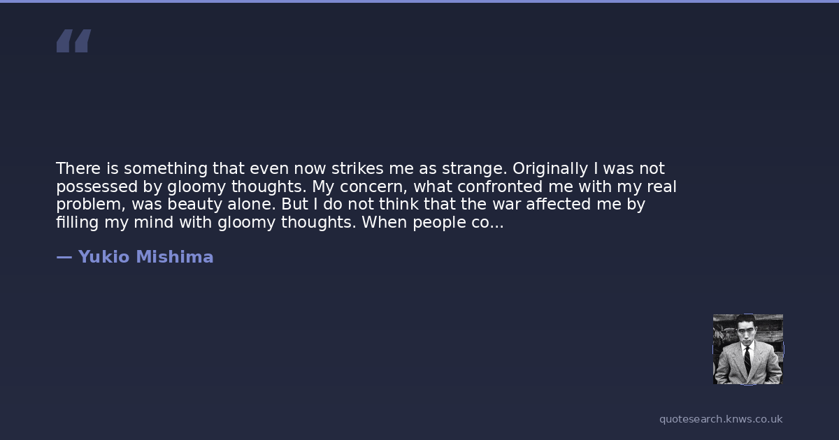 There is something that even now strikes me as strange. Originally I was not possessed by gloomy thoughts. My concern, what confronted me with my real problem, was beauty alone. But I do not think that the war affected me by filling my mind with gloomy thoughts. When people concentrate on the idea of beauty, they are, without realizing it, confronted with the darkest thoughts that exist in this world. That, I suppose, is how human beings are made.