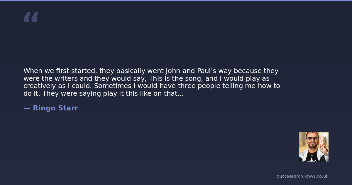 When we first started, they basically went John and Paul's way because they were the writers and they would say, This is the song, and I would play as creatively as I could. Sometimes I would have three people telling me how to do it. They were saying play it this like on that track. I'm saying, For Christ's sake, there are two drummers there. They could never hear that, you know. You'd have to have four arms to do half the stuff they wanted me to do.