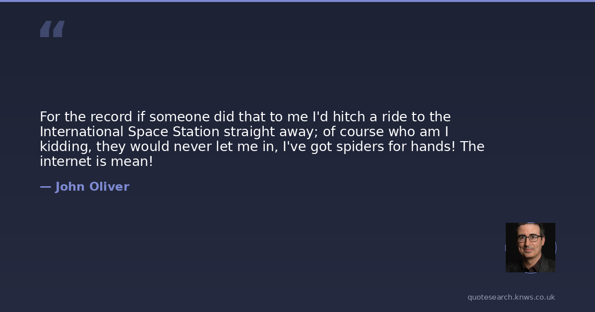 For the record if someone did that to me I'd hitch a ride to the International Space Station straight away; of course who am I kidding, they would never let me in, I've got spiders for hands! The internet is mean!