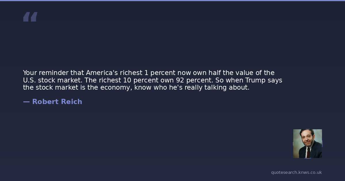 Your reminder that America's richest 1 percent now own half the value of the U.S. stock market. The richest 10 percent own 92 percent. So when Trump says the stock market is the economy, know who he's really talking about.