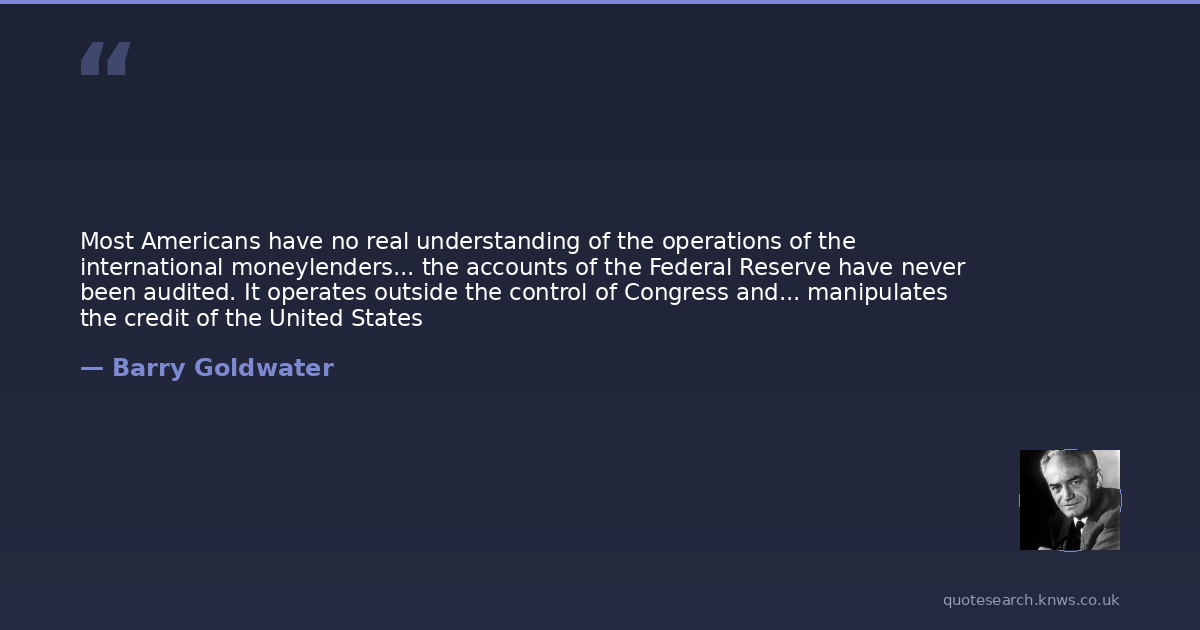 Most Americans have no real understanding of the operations of the international moneylenders... the accounts of the Federal Reserve have never been audited. It operates outside the control of Congress and... manipulates the credit of the United States
