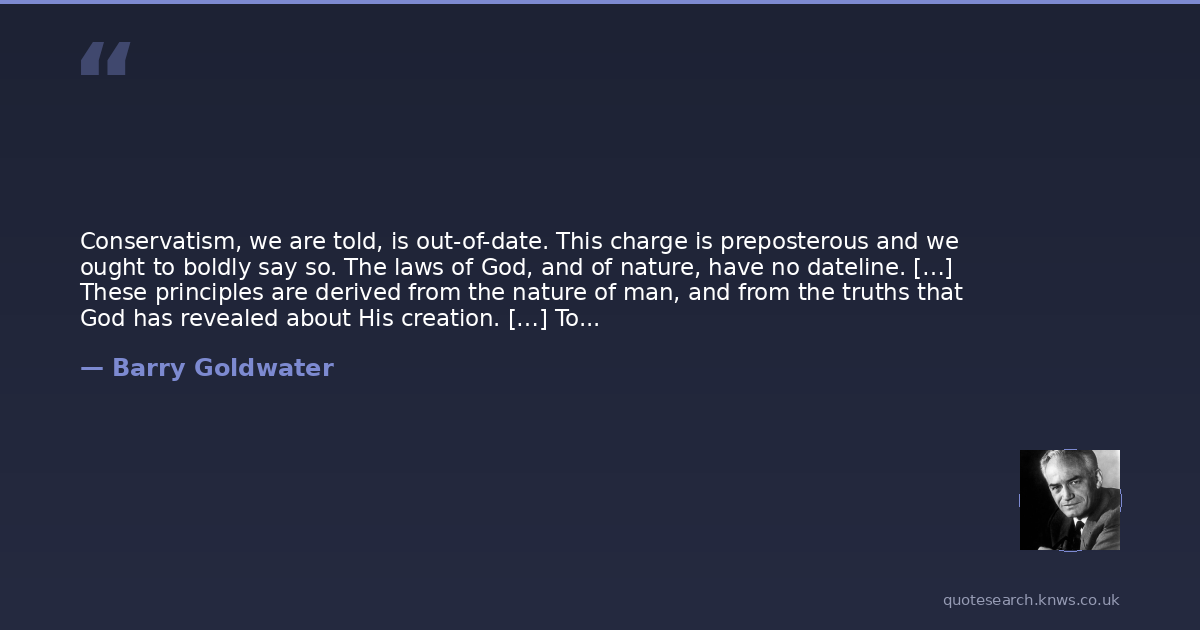 Conservatism, we are told, is out-of-date. This charge is preposterous and we ought to boldly say so. The laws of God, and of nature, have no dateline. […] These principles are derived from the nature of man, and from the truths that God has revealed about His creation. […] To suggest that the Conservative philosophy is out of date is akin to saying that the Golden Rule, or the Ten Commandments or Aristotle’s Politics are out of date.