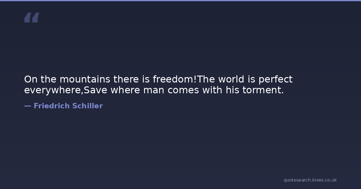 On the mountains there is freedom!The world is perfect everywhere,Save where man comes with his torment.