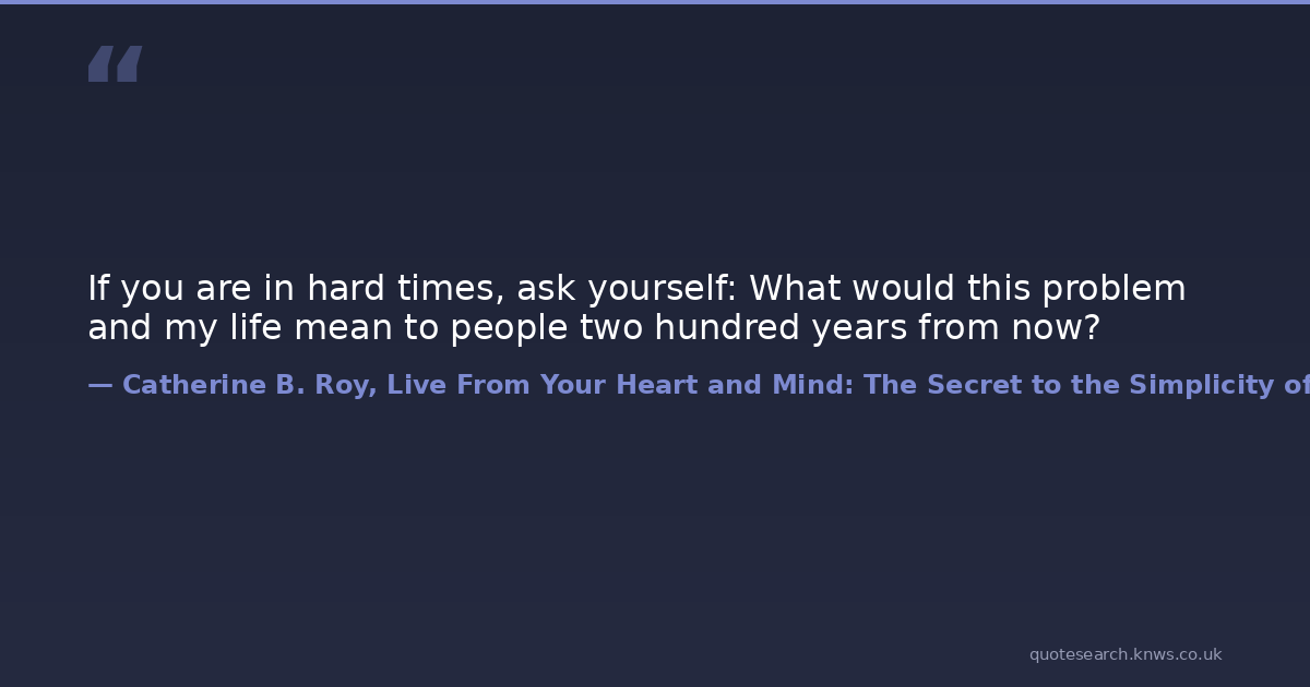 If you are in hard times, ask yourself: What would this problem and my life mean to people two hundred years from now?