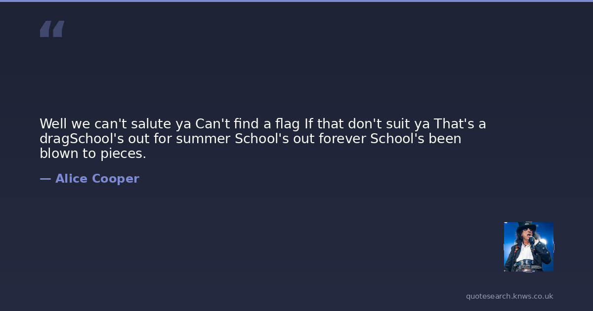 Well we can't salute ya Can't find a flag If that don't suit ya That's a dragSchool's out for summer School's out forever School's been blown to pieces.