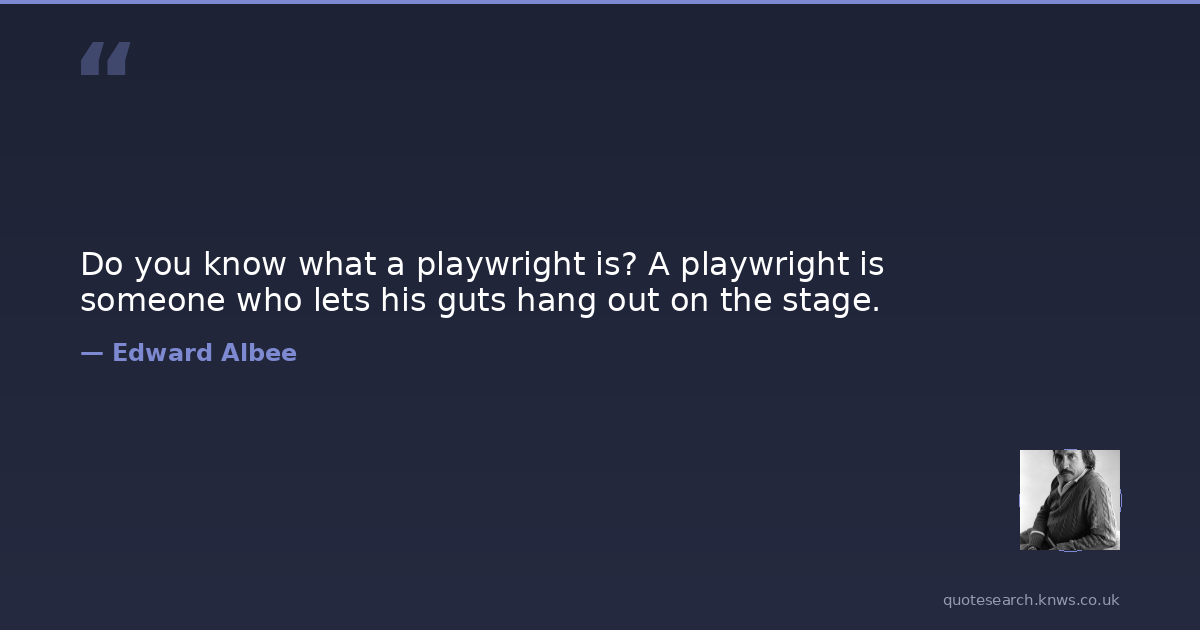 Do you know what a playwright is? A playwright is someone who lets his guts hang out on the stage.