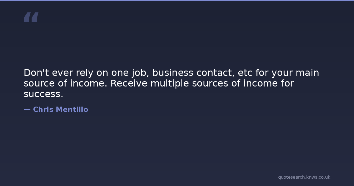 Don't ever rely on one job, business contact, etc for your main source of income. Receive multiple sources of income for success.