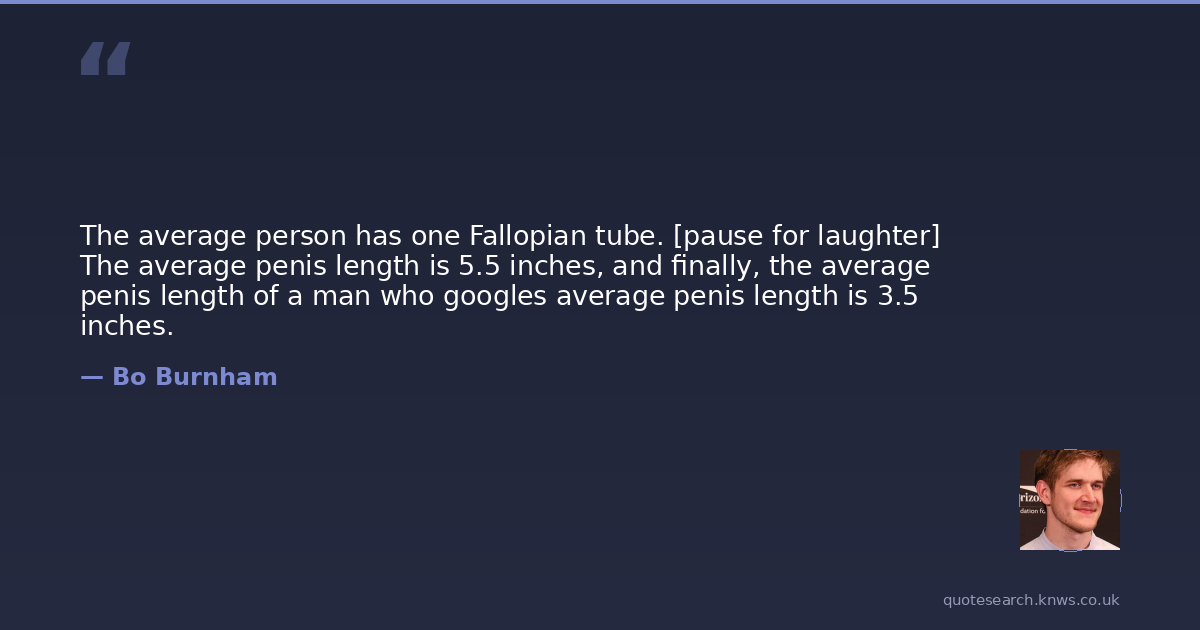 The average person has one Fallopian tube. [pause for laughter] The average penis length is 5.5 inches, and finally, the average penis length of a man who googles average penis length is 3.5 inches.