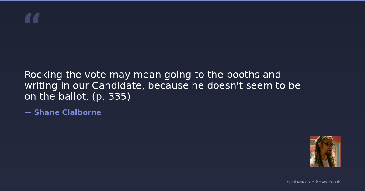 Rocking the vote may mean going to the booths and writing in our Candidate, because he doesn't seem to be on the ballot. (p. 335)