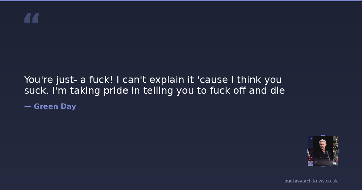 You're just- a fuck! I can't explain it 'cause I think you suck. I'm taking pride in telling you to fuck off and die