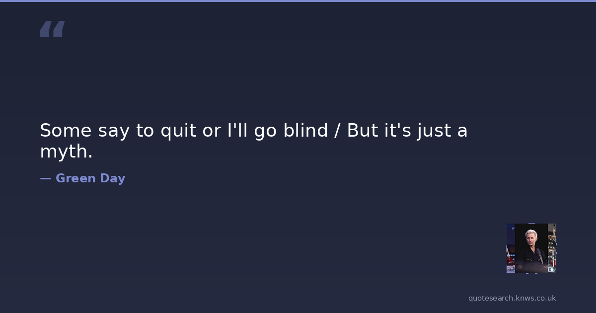 Some say to quit or I'll go blind / But it's just a myth.