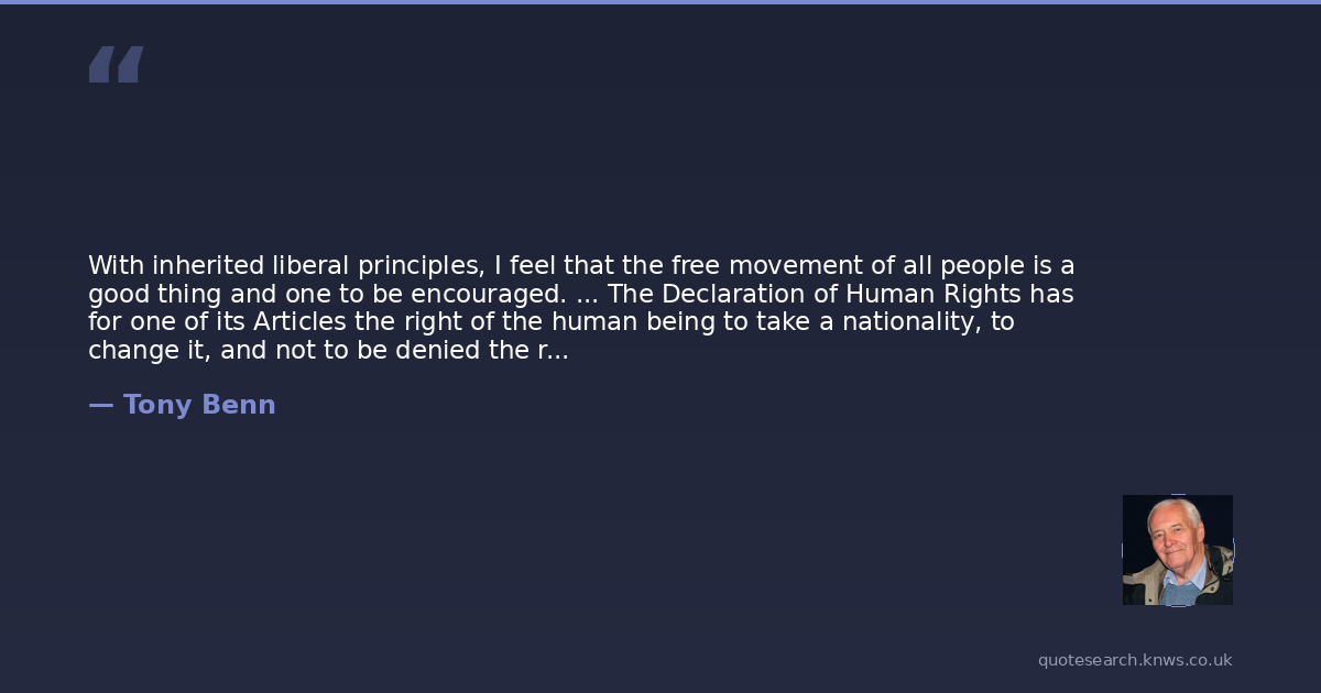 With inherited liberal principles, I feel that the free movement of all people is a good thing and one to be encouraged. ... The Declaration of Human Rights has for one of its Articles the right of the human being to take a nationality, to change it, and not to be denied the right arbitrarily to change it. I realise it is not as easy as that, but most of the difficulties are definable difficulties based on facts and situations which the economic planners now available to Government Departments should be able to grasp and measure. I believe that the basic problem which prevents more immigration is an economic one. ... [T]here is a nearer approach to the ideal of universal admission in the United States than there is here. I think we could learn something from that. ... If we were to work out some form of migration policy based on these lines we would be doing some service to that free movement of populations which is a vital prerequisite to understanding in all parts of the world.
