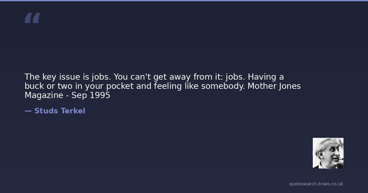 The key issue is jobs. You can't get away from it: jobs. Having a buck or two in your pocket and feeling like somebody. Mother Jones Magazine - Sep 1995
