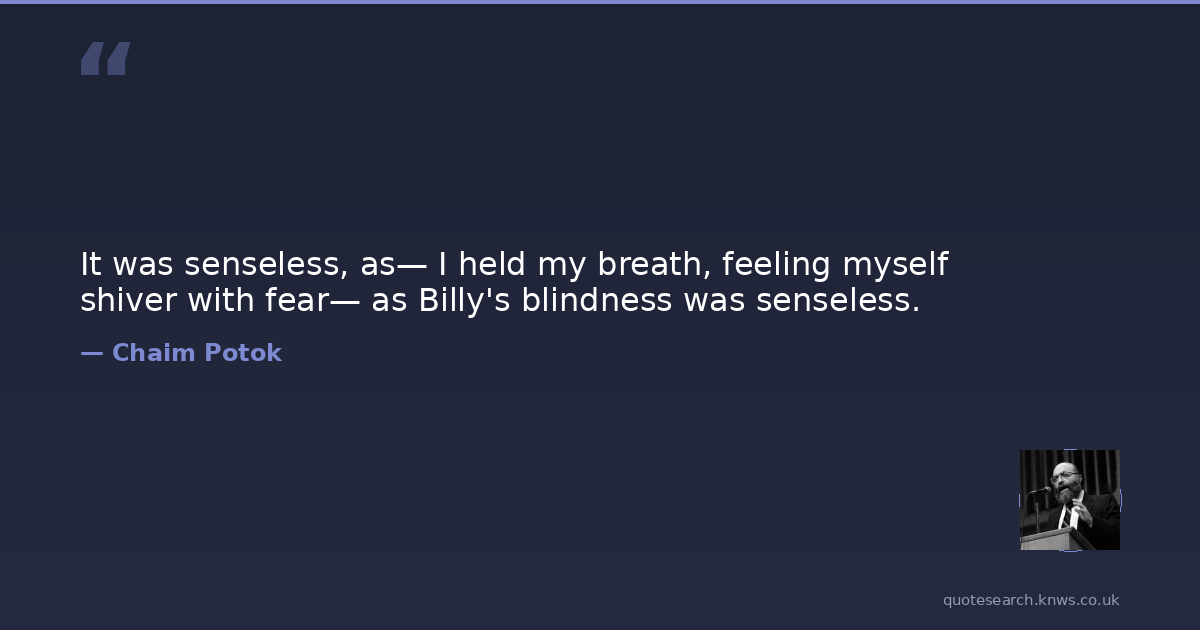 It was senseless, as— I held my breath, feeling myself shiver with fear— as Billy's blindness was senseless.