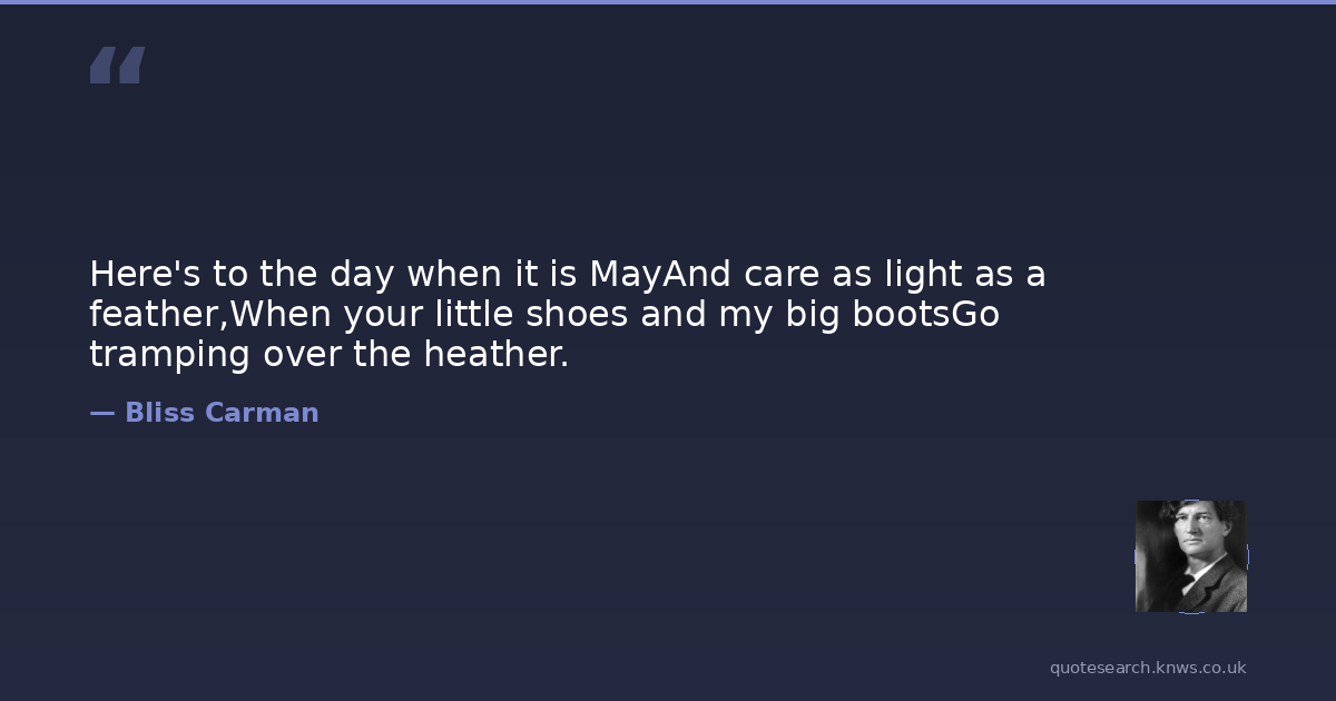 Here's to the day when it is MayAnd care as light as a feather,When your little shoes and my big bootsGo tramping over the heather.