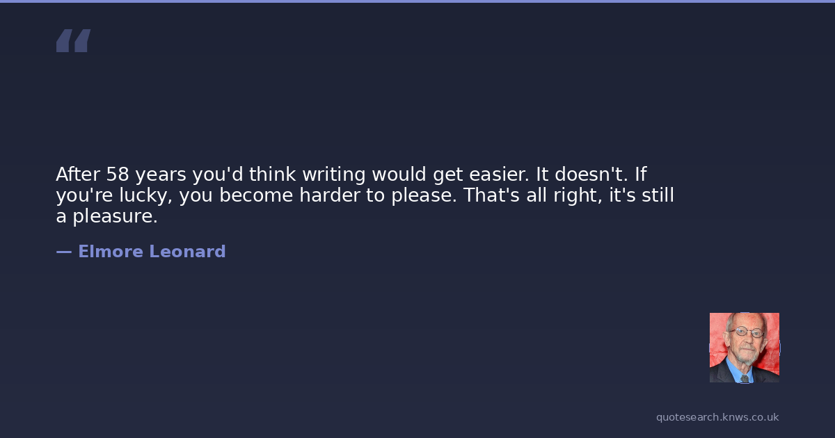 After 58 years you'd think writing would get easier. It doesn't. If you're lucky, you become harder to please. That's all right, it's still a pleasure.