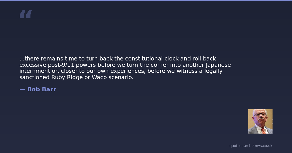 ...there remains time to turn back the constitutional clock and roll back excessive post-9/11 powers before we turn the corner into another Japanese internment or, closer to our own experiences, before we witness a legally sanctioned Ruby Ridge or Waco scenario.