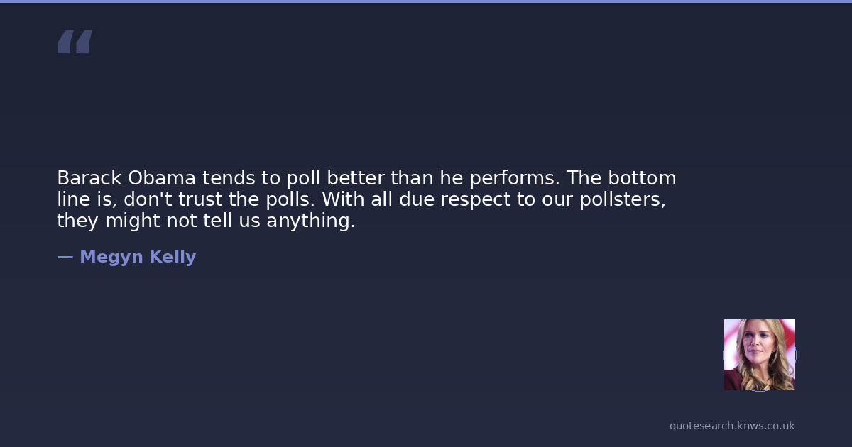 Barack Obama tends to poll better than he performs. The bottom line is, don't trust the polls. With all due respect to our pollsters, they might not tell us anything.