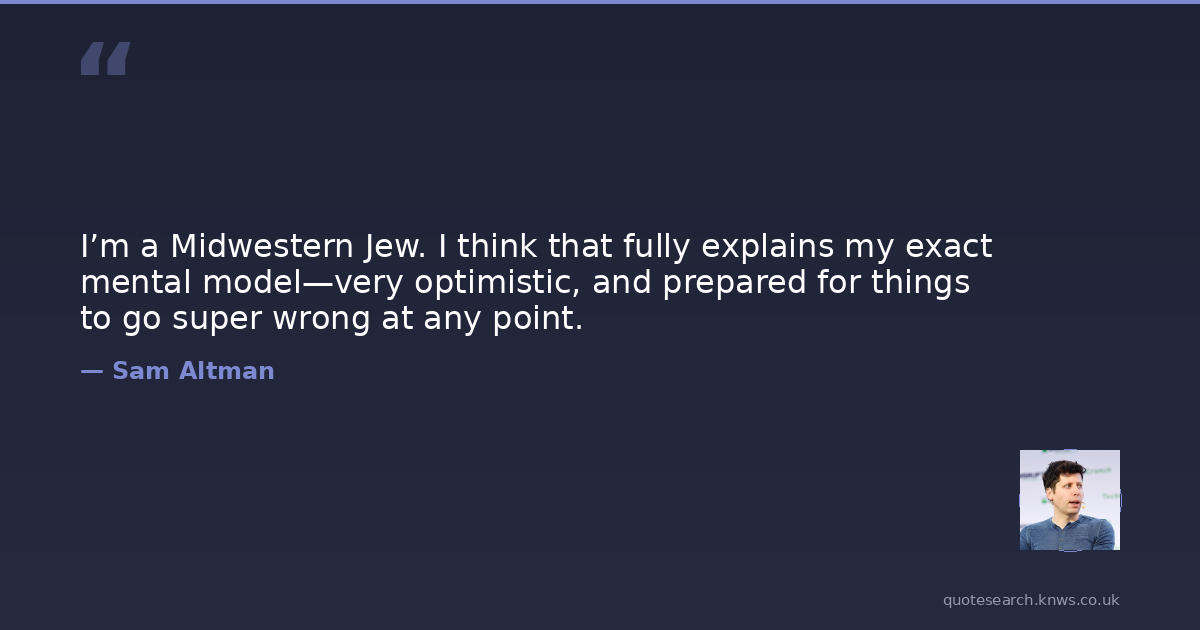 I’m a Midwestern Jew. I think that fully explains my exact mental model—very optimistic, and prepared for things to go super wrong at any point.