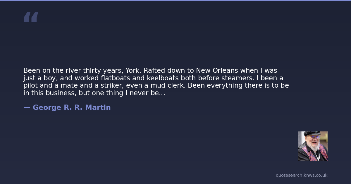 Been on the river thirty years, York. Rafted down to New Orleans when I was just a boy, and worked flatboats and keelboats both before steamers. I been a pilot and a mate and a striker, even a mud clerk. Been everything there is to be in this business, but one thing I never been, and that's a sharper.